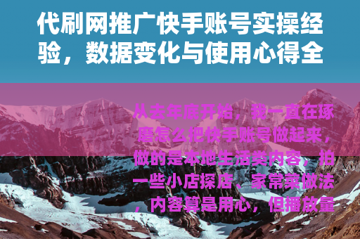 经过两个月的反复尝试,我踩了不少坑,也积累了一些实战经验,这里把操作细节写出来,希望给同样在做快手的朋友一些参考。