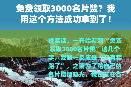 说实话,一开始看到“免费领取3000名片赞”这几个字,我第一反应是“又有套路了”,之前为了给自己的名片增加曝光,我试过在各种平台上花钱买赞,也试过找朋友帮忙点,但效果都不太理想,不是价格太高,就是点了没几天掉光,甚至还有被平台检测到虚假数据后直接封号的经历,那时候我就觉得,想要正儿八经拿到3000个真实的名片赞,要么靠真金白银砸,要么靠时间慢慢熬。
