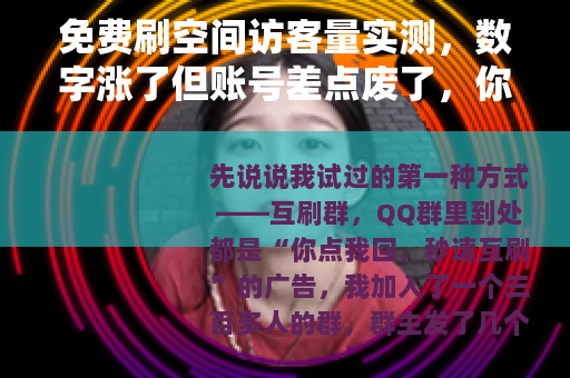 你可能要问了:“那免费刷空间访客量到底有没有靠谱的?”我的答案是:没有,至少我试过的这几种,要么是让你白忙活,要么就是拿你的账号安全开玩笑,那些号称“稳定”“正规”的免费工具,背后大多藏着数据收集、账号盗用、甚至捆绑恶意软件的套路,你以为自己赚了流量,实际上你才是那个被“刷”的人。