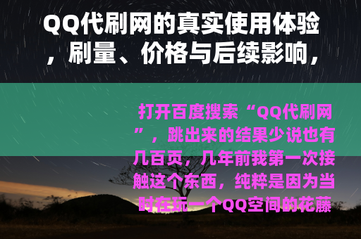 这篇文章我不会跟你讲什么大道理,也不想搞那种“先分析再总结”的标准写法,我就把自己这些年跟QQ代刷网打交道的经历,以及后来因为好奇去深入了解甚至短暂参与过的内部情况,原原本本倒出来,你如果正琢磨着要不要找个代刷网给自己的QQ号或者空间整点数据,那这篇东西或许能帮你省下不少冤枉钱和时间。