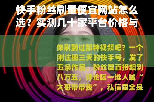 你刷到过那种视频吧?一个刚注册三天的快手号,发了五条作品,粉丝量直接飙到八万五,评论区一堆人喊“大哥带带我”,私信里全是求互粉的,但你要是点开他主页仔细看——每个视频播放量不过两三百,点赞不超过二十个,评论区更是冷清得像凌晨三点的便利店,这种号怎么来的?答案大家都心知肚明:刷的,而且大概率是从那些“刷快手粉丝网站便宜”的渠道买的。