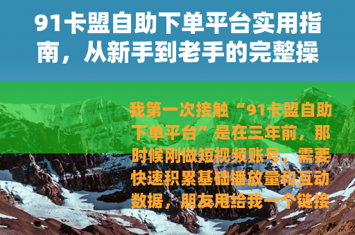 我第一次接触“91卡盟自助下单平台”是在三年前,那时候刚做短视频账号,需要快速积累基础播放量和互动数据,朋友甩给我一个链接,说“你试试这个,比外面找人刷便宜”,说实话,我一开始很反感这种“刷”的概念,觉得不靠谱,但后来发现,很多同行都在用类似的工具,而且效果确实直接——不是让你造假,而是帮你缩短冷启动的等待期。