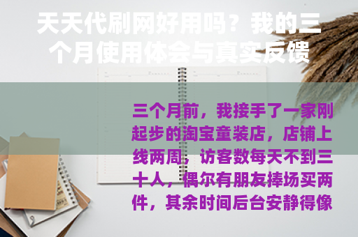 那是我第一次接触代刷平台,后来我才知道,像我这样的小卖家,在这个圈子里数都数不清,今天我想把这三个月里使用天天代刷网的真实情况写下来,不吹不黑,只说我看到、用到、感受到的东西,给那些同样在犹豫的朋友一点参考。