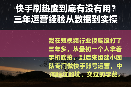快手刷热度到底有没有用?三年运营经验从数据到实操全面分析