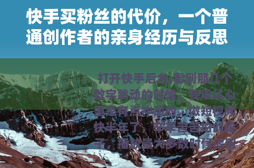 我开始留意那些在评论区、私信里出现的广告——“极速涨粉,快手粉丝,安全稳定”,价格也不贵,几百块钱就能买上千个粉丝,抱着试试看的心态,我联系了一个卖家,他给我发来几张截图,展示他帮别人操作后的账号数据,看起来确实涨了不少,他还保证不会被平台察觉,说用的是“真人活粉”。