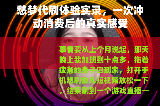 事情要从上个月说起,那天晚上我加班到十点多,拖着疲惫的身子回到家,打开手机想刷会儿短视频放松一下,结果刷到一个游戏直播——对方正在展示一套我梦寐以求的稀有装备,弹幕里有人问“怎么弄的”,主播随口说了句“找愁梦代刷就行”,我当时脑子一热,鬼使神差地点开了搜索框。