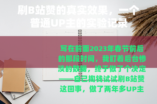 2023年春节前后的那段时间,我盯着后台惨淡的数据,终于做了个决定——自己掏钱试试刷B站赞这回事,做了两年多UP主,粉丝刚过千,视频播放量平均两三千,点赞更是可怜,十几个算好的,偶尔破百能高兴一整天,过年那段时间刷到好几个同类型账号突然爆火,评论区有人阴阳怪气“买赞的吧”,也有人说“人家内容好”,我忍不住想:如果我也刷一点赞,能不能打破这个死循环?