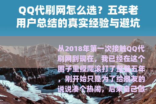 从2018年第一次接触QQ代刷网到现在,我已经在这个圈子里摸爬滚打了整整五年,刚开始只是为了给朋友的说说凑个热闹,后来自己做小生意需要粉丝量撑门面,再后来甚至帮几个工作室做过代刷渠道的测试,这五年里,我见过日流水几十万的稳定平台,也见过卷钱跑路的草台班子,更和那些所谓的“技术大佬”斗智斗勇过无数次,今天我想把这些真实经历写下来,不是为了教你投机取巧,而是希望每一个需要这东西的人,都能少交点学费。