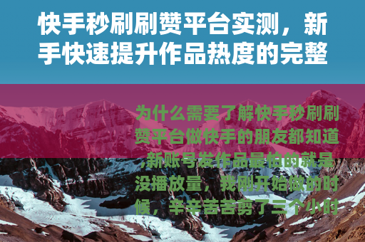 做快手的朋友都知道,新账号发作品最怕的就是没播放量,我刚开始做的时候,辛辛苦苦剪了三个小时的视频,发出去半天就几十个播放,连个赞都没有,后来听同行说可以试试刷赞平台,但网上一搜全是广告,真假难辨,上周我自费测试了市面上几个号称“秒刷”的平台,快手秒刷刷赞平台”算是体验比较特殊的一个,今天把整个过程和细节写出来,给同样想快速起号的朋友做个参考。