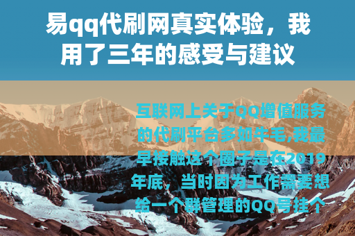 互联网上关于QQ增值服务的代刷平台多如牛毛,我最早接触这个圈子是在2019年底,当时因为工作需要想给一个群管理的QQ号挂个等级,又不想花太多钱直接充官方会员,就试着搜了一下“qq代刷”,结果铺天盖地的网站跳出来,易qq代刷网就是其中一个,到今年为止,我断断续续用了这个平台三年多,中间也换过其他几家,但最后还是固定在它这里,这篇文章就把我个人的使用经历、平台的功能细节、价格变化以及一些需要注意的地方写出来,供想了解这类服务的朋友参考。