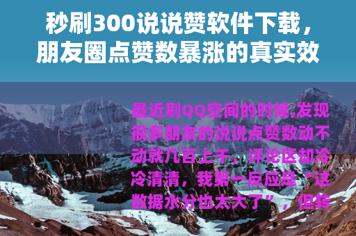 最近刷QQ空间的时候,发现很多朋友的说说点赞数动不动就几百上千,评论区却冷冷清清,我第一反应是“这数据水分也太大了”,但转念一想,有时候为了活动要求、社交面子,或者单纯想让某条内容显得更受欢迎,确实会有人需要快速增加点赞数,于是我去搜了一圈“秒刷300说说赞软件下载”,还真找到了几个声称能实现这个功能的工具,今天不谈虚的,就把我这段时间实际测试的体验、软件操作流程、以及用完之后的效果变化,原原本本写出来,供你参考。