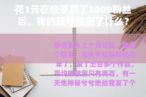 事情要从上个月说起,我有个朋友,做快手短视频快半年了,发了三百多个作品,平均播放量只有两百,有一天他神秘兮兮地给我发了个链接,说“1块钱,三千粉,要不要试试?”我第一反应是——这玩意儿还有人信?后来转念一想,反正就一块钱,买个好奇心也不算亏。