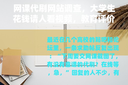 最近在几个高校的贴吧和论坛里,一条求助帖反复出现:“下周要交网课截图了,有没有靠谱的代刷?在线等,急。”回复的人不少,有的推荐淘宝店铺,有的甩出QQ群号,还有人直接留下微信号说“私聊,包过”,我顺着这些线索,花了三周时间接触了十几个代刷平台、几十个学生和几位高校老师,想搞清楚一件事:为什么网课明明是为了让学生多学点东西,最后却催生出一个“花钱消课”的灰色产业?