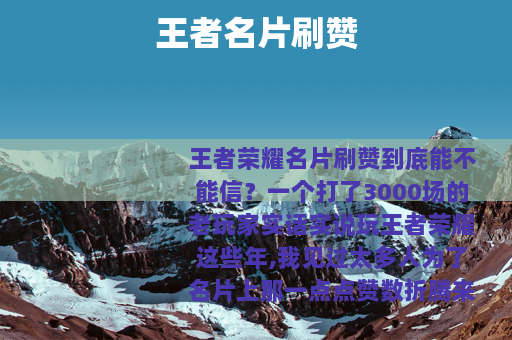 玩王者荣耀这些年,我见过太多人为了名片上那一点点赞数折腾来折腾去,有人花几十块买刷赞服务,有人在群里满天发互赞链接,还有人专门建小号自己给自己点,今天我不聊什么大道理,就作为一个从S3赛季就开始肝、名片挂过国标也挂过铜标的普通玩家,把关于“王者名片刷赞”这件事里里外外掰扯清楚。 先说说你为什么会动刷赞的念头,我猜大概率是某天打开别人的名片,看见人家主页上1000多个赞,而自己辛辛苦苦打了两年才攒了30个,特别是当你的好友列表里,那些操作一般、胜率一般、连个像样皮肤都没有的人,名片上的赞数却比你多了一个零,这时候心里总有点不是滋味——凭什么?其实不凭什么,人家可能只是比你早知道了“刷赞”这回事。 王者荣耀的名片系统设计得很有意思,它不显示你的真实实力,却把“被认可”的次数放在最显眼的位置,你拿了几次MVP没人直接看见,但那个点赞数字往那一摆,新加的好友第一反应就是“这人挺受欢迎”,游戏里的社交很多时候就是这么表面,我需要承认,我自己也曾经因为名片赞太少,在组队时被人嫌弃过,组队房间左上角,队长扫了一眼我的名片,然后发了句“这什么老年点赞数”,直接把我踢了,就那种时候,你很难不去想:要不我也刷一点? 所以我不反对任何人因为这种现实原因去尝试刷赞,今天我想说的,是把刷赞这条路从头到尾给你捋一遍——什么样的刷赞靠谱,什么样的纯粹送钱,刷完之后会有什么结果,以及有没有比刷赞更好的办法。 先说最笨的刷赞方式:手动互赞,你去各种游戏论坛、QQ群、贴吧里发帖“互赞,点了回”,加了一堆好友,一个一个点过去,这种方法确实安全,因为每一个赞都来自真实账号,系统不可能检测出什么异常,但问题在于效率极低,我试过,花了一个下午,加了40多个好友,最后名片上多了十几个赞,因为大多数人点了你的赞之后,根本不会记得回来回点,或者过两天就把你删了,而且这些赞来自路人,他们不会长期给你增加互动,时间一长,那些赞反而显得很假——你和这些“好友”之间没有对战记录,没有送金币记录,点开一看全是陌生人,懂行的人一眼就知道这是刷的。 稍微高级一点的是用所谓的“互赞平台”或“互赞软件”,这类工具的原理就是搭建一个虚拟广场,你把你的游戏ID填进去,系统自动分配其他用户给你点赞,同时你也需要去给别人点赞,听起来公平,但实际操作中,大部分这类平台已经变成了纯粹的付费工具,你免费做任务攒积分,攒一天可能只能换5个赞,而直接花钱买积分,100块钱能瞬间拿到几百赞,而且这些平台质量参差不齐,有些需要你授权账号信息,有些直接就是盗号钓鱼的,我身边有个朋友用过一次,第二天号就被异地登录了,还好及时发现改了密码,但损失了几百个铭文碎片和一个赛季皮肤,不是说所有平台都有问题,但你要知道,游戏外部的第三方工具本身就处在灰色地带,一旦出了事你连找谁哭都不知道。 再来说最直接的,也就是你现在最关心的——找商家付费代刷,打开某宝或者一些游戏交易网站,搜“王者名片刷赞”,一页一页全是,价格从几块钱一百赞到几十块钱一千赞不等,这些商家怎么做到的?他们手里通常有一大批“机器人号”或者“僵尸号”,通过脚本程序批量登录这些号去给你的名片点赞,你付钱之后,商家会在约定的时间(通常是凌晨或者半夜人少的时候)集中操作,几分钟内你的赞数就会快速上涨。 我坦白讲,我自己也试过一次,当时是因为要参加一个公会内部的“人气王”活动,奖品是一个传说皮肤,规则就是看谁名片收藏和点赞多,我实在不愿意输了面子,花20块钱买了500赞,结果呢?效果确实立竿见影,我的赞数直接从80跳到了580,第二天公会群里都震惊了,但问题是,第三天我的账号就收到了一个“异常行为提醒”,系统让我修改密码,并且冻结了名片功能三天,虽然最终账号没有大问题,但从此以后我名片上的赞数再也没增加过——系统似乎把我的账号标记了,别人给我点赞时经常显示“点赞失败”,或者点了之后过几分钟就被清零,也就是说,那500个假赞不仅没有帮我长期留住在公会的人气,反而让我真实的点赞功能受损了,得不偿失。 这个案例里有个非常关键的细节:商家承诺的“纯手工点赞”几乎全部是谎言,所谓的“纯手工”是指用真人手动操作多个账号来点赞,成本极高,他们怎么可能为20块钱真的派几十个人去操作?绝大多数商家就是用脚本,而脚本的IP地址、操作间隔、账号活跃度等特征很明显,腾讯的安全系统不是吃素的,王者荣耀这几年的安全机制迭代了很多次,尤其是针对“批量刷赞”“批量刷收藏”这类非正常行为,有一套专门的算法去识别,你一次增加几十个赞问题不大,但如果你几分钟内突然暴涨几百赞,系统几乎必定会触发警报,轻则限制名片功能几天,重则对账号做出短期封禁处理——我见过最狠的一个案例,一个玩家刷了1000赞,号被直接封了30天,申诉都过不了。 还有一种情况特别迷惑人:有些商家刷完之后,你的赞数确实稳住了,一个月都没掉,你以为成功了,但其实是因为系统还没有来得及处理,腾讯对点赞数据的清洗往往是周期性的,可能每半个月或者每月会跑一次数据清理,所有被判定为异常的赞,会批量被清除,所以很多玩家刷赞之后,过了一个月发现赞数突然掉了大半,还以为是被别人恶意踩了,实际上就是系统清理的,这种心理落差比你一