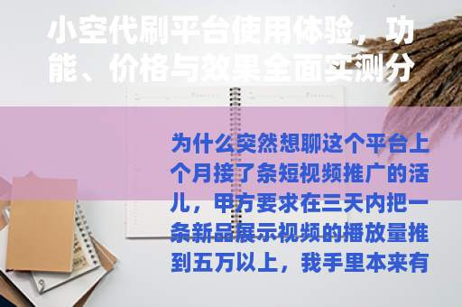 小空代刷平台使用体验,功能、价格与效果全面实测分析