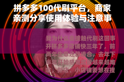 拼多多100代刷平台,商家亲测分享使用体验与注意事项