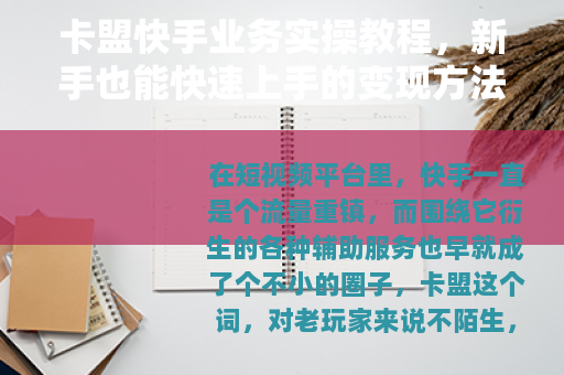 卡盟快手业务实操教程,新手也能快速上手的变现方法