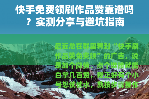 最近总在群里看到“快手刷作品赞免费领”的广告,说是加个微信、点个链接就能白拿几百赞,我正好有个小号想试试水,就按步骤操作了一回,结果发现,这事儿跟宣传的完全两码事。