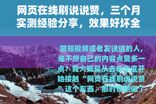 网页在线刷说说赞,三个月实测经验分享,效果好坏全看这一篇