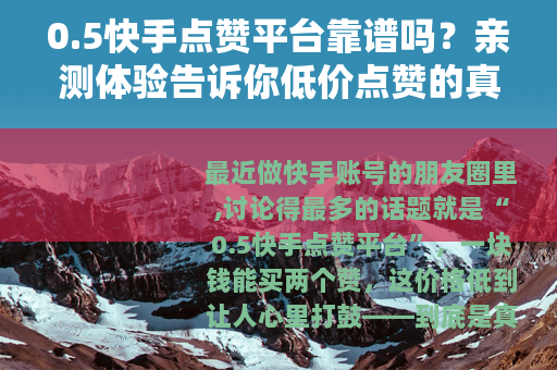 最近做快手账号的朋友圈里,讨论得最多的话题就是“0.5快手点赞平台”,一块钱能买两个赞,这价格低到让人心里打鼓——到底是真香还是坑?我自己运营着一个美食类快手号,粉丝不多但更新勤快,最近想测试一下低成本推广的效果,就花了小半个月时间,前后试了五六家标着“0.5元/赞”的平台,今天把整个过程、数据变化、账号状态全都写出来,不绕弯子,只讲实际体验。