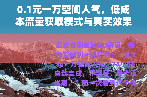 最近在闲鱼和QQ群里,我频繁刷到一种广告:“0.1元一万空间人气,24小时自动完成,不封号,量大更优惠。”第一次看到这个价格,我第一反应是——这连服务器成本都覆盖不了吧?但好奇心驱使下,我决定自掏腰包试一下,顺便研究一下这个行业的真实面貌,这篇文章是我从个人测试、与卖家交流、以及后续观察中整理出来的笔记,不吹不黑,只聊我看到的事实。