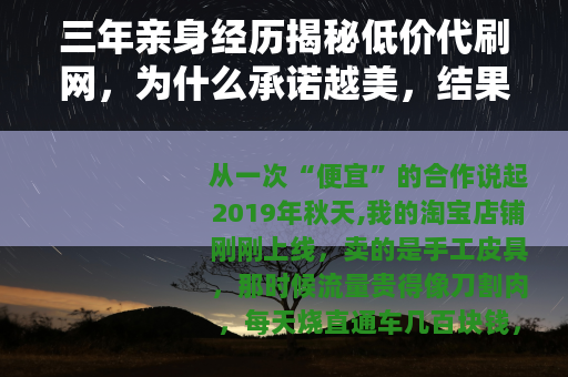 2019年秋天,我的淘宝店铺刚刚上线,卖的是手工皮具,那时候流量贵得像刀割肉,每天烧直通车几百块钱,单量却寥寥无几,一个做电商培训的朋友对我说:“老张,你不刷单怎么活?去看看那些低价代刷网,几十块钱就能搞一堆基础销量。”