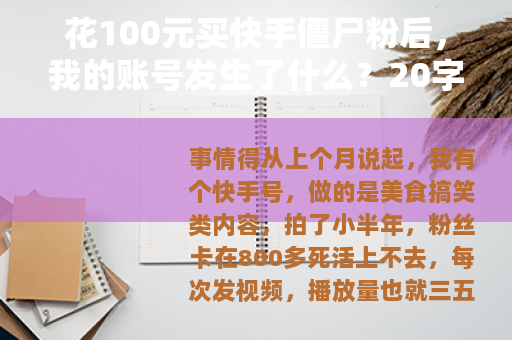 事情得从上个月说起,我有个快手号,做的是美食搞笑类内容,拍了小半年,粉丝卡在800多死活上不去,每次发视频,播放量也就三五百,点赞十几个,评论更是少得可怜,看着别人随便发个切菜视频都能火,心里说不急是假的。