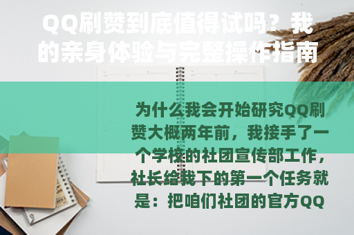 大概两年前,我接手了一个学校的社团宣传部工作,社长给我下的第一个任务就是:把咱们社团的官方QQ空间搞起来,一个月内点赞量要破千,转发量至少五百,我当时盯着屏幕上的零蛋发呆,脑子里第一个蹦出来的念头就是——要不试试刷赞?