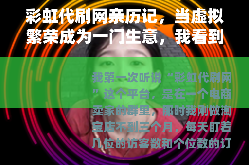 我第一次听说“彩虹代刷网”这个平台,是在一个电商卖家的群里,那时我刚做淘宝店不到三个月,每天盯着几位的访客数和个位数的订单,心里像压了块石头,有个叫“阿杰”的卖家在群里甩了个链接,说是“新出的刷单平台,安全稳定,一单0.5元,还给补流量”,我点进去,界面是彩虹色的,logo是一朵云,底下写着“让数据飞一会儿”,说实话,第一反应是抗拒——谁不知道刷单有风险?但群里接二连三的反馈“昨晚刷了50单,今天自然流量涨了30%”让我动摇了,那天晚上,我注册了账号,充了100块钱,按照教程发布了任务:刷10单,要求货比三家、浏览三分钟、假聊几句,第二天早上一看,店铺后台果然多了几个真实的咨询——虽然没成交,但那种“数据在动”的感觉,像给血管打了一剂兴奋剂。