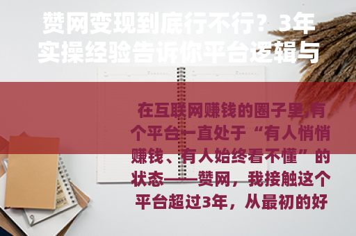 在互联网赚钱的圈子里,有个平台一直处于“有人悄悄赚钱、有人始终看不懂”的状态——赞网,我接触这个平台超过3年,从最初的好奇试探,到后来的系统研究,再到如今相对冷静的观察,今天我想把关于赞网的真实面貌、操作逻辑以及普通用户应该如何对待它的建议,一次性说清楚。