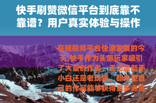 快手刷赞微信平台到底靠不靠谱?用户真实体验与操作流程全解析