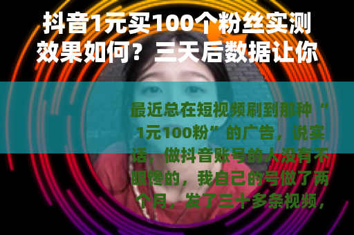最近总在短视频刷到那种“1元100粉”的广告,说实话,做抖音账号的人没有不眼馋的,我自己的号做了两个月,发了三十多条视频,播放量始终卡在两三百,粉丝才八十多个,每天蹲在后台看数据,焦虑到做梦都在涨粉,某天深夜刷到这条推送,手指一滑就下了单——1块钱,连瓶水都买不了,就当买份好奇心吧。