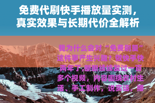免费代刷快手播放量实测,真实效果与长期代价全解析