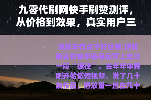 说起来有点不好意思,但我确实在快手账号运营上走过一段“捷径”,去年年中我刚开始做短视频,发了几十条作品,播放量一直在几十到几百之间徘徊,点赞更是少得可怜——十几二十个,有时候连自己点的那一个都没有,那段时间每天盯着后台数据,心里越来越急,正好有个做自媒体的朋友告诉我,他早期起步时用过一些代刷服务,其中有个叫“九零代刷网”的平台,说是专门做快手、抖音这些平台的赞、粉、播放量,价格公道,到账也稳,我当时半信半疑,但还是抱着试试看的心态去搜了一下。