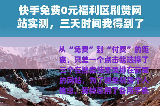 我选择了三个在搜索结果里排在前面的网站,为了避免暴露个人信息,我特意用了备用手机号和一台从未登录过快手的平板电脑,第一个网站叫“赞多多福利区”,页面设计得相当粗糙——大红大绿的背景,中间一个巨大的输入框,旁边写着“输入快手ID,立即免费领赞”,我输入了自己一个不常用的小号ID,点击“立即领取”,下一秒,页面跳转到了一个二维码,上面写着:“请关注下方公众号,输入暗号‘888’,即可获得验证码。” 我依言关注了一个叫“每日福利集锦”的公众号,输入“888”后,对方立刻发来一条自动消息:“请将本活动分享至3个200人以上的快手群,并截图发送,验证后即可激活。” 我照做了,分享完并发送截图后,对方再也没有回复,等了两个小时,我回到那个网站,重新输入ID,页面显示“验证失败,请重新操作”,第二次尝试,我换了个邮箱注册,结果步骤一模一样——又是关注、分享、截图、等待,这次我留了个心眼:截图发给公众号后,我立刻用另一个手机登录快手账号,发现点赞数纹丝未动,而那个公众号,在第三天推送了一条广告:卖一款三无祛痘霜。