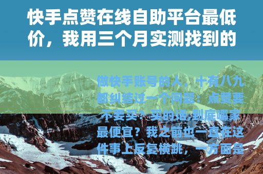 直到三个月前,我终于下定决定,把市面上主流的快手点赞在线自助平台挨个测试了一遍,不是为了别的,就为了搞清楚一件事:所谓的最低价,到底是真便宜还是割韭菜。