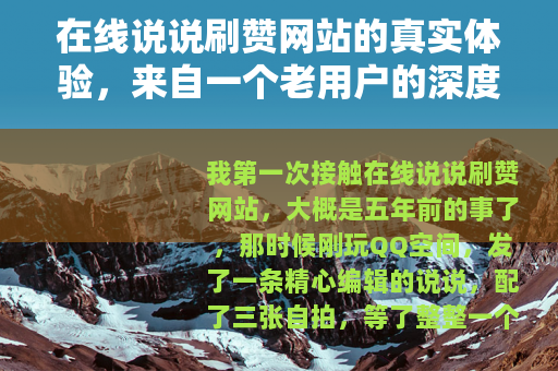 这五年里,我前前后后用过不下二十个在线说说刷赞网站,踩过的坑比走过的路还多,今天这篇文章,不吹不黑,纯粹从一个普通用户的视角,聊聊这些网站到底是怎么回事,值不值得用,以及用了之后会带来什么连锁反应,如果你也在犹豫要不要点开某个刷赞链接,或者已经用过但心里犯嘀咕,那么这篇文章应该能给你一些参考。