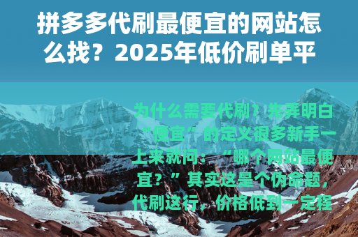 2025年拼多多代刷最便宜的网站推荐名单