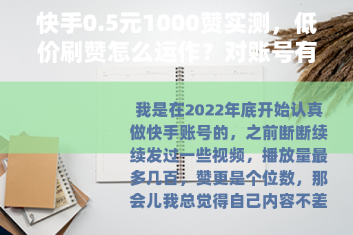 我是在2022年底开始认真做快手账号的,之前断断续续发过一些视频,播放量最多几百,赞更是个位数,那会儿我总觉得自己内容不差,但就是没人看,刷到一个同行在朋友圈晒数据,一个月涨粉两万,播放量稳定十万加,我问他怎么做到的,他回了一句:“花点小钱买点基础赞,平台才会给你推流。”