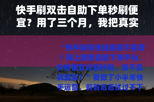 快手刷双击自助下单秒刷便宜?用了三个月,我把真实感受说清楚
