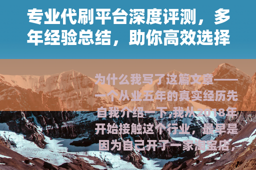 专业代刷平台深度评测,多年经验总结,助你高效选择靠谱服务