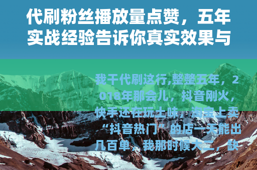 我干代刷这行,整整五年,2018年那会儿,抖音刚火,快手还在玩土味,淘宝上卖“抖音热门”的店一天能出几百单,我那时候大二,缺钱,跟一个学计算机的哥们租了间民房,开始了代刷生涯,到今天,我们工作室关了两年了,但圈子里的人该认识的都认识,该踩的坑一个没少踩,今天我把知道的摊开说,不美化,不贩卖焦虑,就是给想碰这行或者想买的人一个参考。