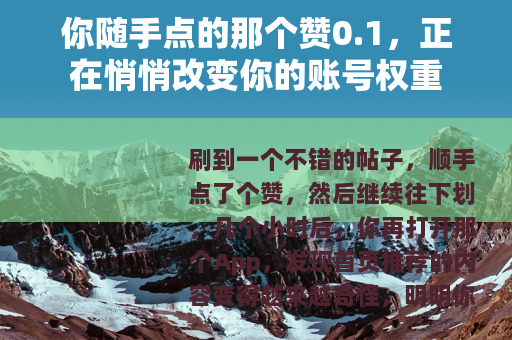 刷到一个不错的帖子,顺手点了个赞,然后继续往下划,几个小时后,你再打开那个App,发现首页推荐的内容变得越来越奇怪,明明你只对某个领域稍微感兴趣,系统却疯狂推送类似的东西,更诡异的是,你明明只给一条普通动态点了赞,那条动态的作者却突然收到几十个陌生人的关注,这一切的起点,可能就是你那个不经意的“赞0.1”。