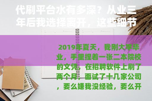 2019年夏天,我刚大学毕业,手里捏着一张二本院校的文凭,在招聘软件上刷了两个月,面试了十几家公司,要么嫌我没经验,要么开出三千块的底薪让我做销售,那天蹲在出租屋里啃馒头,手机弹出一条消息:“招电商运营助理,月薪8k-12k,会打字就行。”我眼睛亮了。