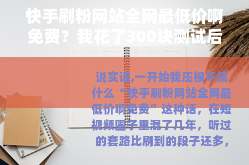 这次花了300块钱买了个教训,说亏也不亏,因为至少搞清楚了这些“全网最低价”和“免费”背后的门道,现在回头去看那些广告词——“快手刷粉网站全网最低价啊免费”——每一个字都在暗示你“占便宜”,但真正的便宜哪里那么容易占到呢?
