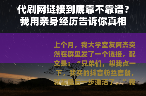 上个月,我大学室友阿杰突然在群里发了一个链接,配文是:“兄弟们,帮我点一下,我买的抖音粉丝套餐,就差最后一步激活了。”我点进去一看,域名是“www.xxxxx.com/zz”,页面设计得跟正规平台一模一样,顶部还挂着“全网低价·极速上粉·安全稳定”的滚动条,阿杰说他在淘宝上搜不到靠谱的,就找了家代刷网,花了80块买了5000粉丝,结果第二天被封号了,那80块也打了水漂。