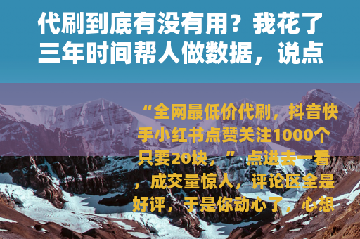 “全网最低价代刷,抖音快手小红书点赞关注1000个只要20块。” 点进去一看,成交量惊人,评论区全是好评,于是你动心了,心想花几十块钱让视频或者店铺数据漂亮一点,总没坏处吧?我做了三年代刷业务,从兼职客服做到团队小主管,后来又不干了,今天这篇不是劝你或者骂你,就是想跟你聊聊我亲眼看到的那些事。
