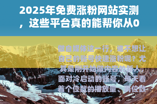 做自媒体这一行,谁不想让自己的账号快速涨粉呢?尤其是刚开始做内容的新人,面对冷启动的账号,每天看着个位数的播放量、两位数的粉丝数,那种焦虑感我太懂了,于是很多人会想到一个词——免费涨粉网站,网上搜一下,铺天盖地的“免费涨粉”、“一键引流”、“互助互粉”的网站和平台,看着就让人心动,但问题来了:这些免费涨粉网站到底有用吗?我用了一年多时间,亲自测试了十几个号称能够免费涨粉的网站和工具,踩过坑,也捡过宝,今天就把这些真实的经历和心得全写出来,希望能帮你少走些弯路。