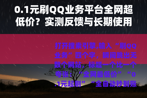 打开搜索引擎,输入“刷QQ业务”四个字,瞬间跳出无数个网站,标题一个比一个夸张:“全网最低价”“0.1元起刷”“全自动秒到账”,尤其是那些打着“全网超低价刷QQ业务平台0.1”字样的,几乎每页都有三四个,作为一个从2018年就开始接触这类服务的用户,我前前后后试过不下二十个平台,花过几百块,也踩过不少坑,今天这篇内容,我想抛开那些官方套话,纯粹从一个普通用户的角度,把这类低价刷业务平台的真实面貌、运作逻辑、价格差异背后的原因,以及长期使用下来我总结出的几个要点,一次性说清楚。
