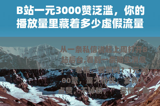 那一刻,我忽然明白了一个道理:在B站,点赞数已经成了一种可以定价的商品,而“一元3000赞”这个价格,低到让人怀疑它的真实性,却又精准地戳中了每一个挣扎在流量底层的创作者。